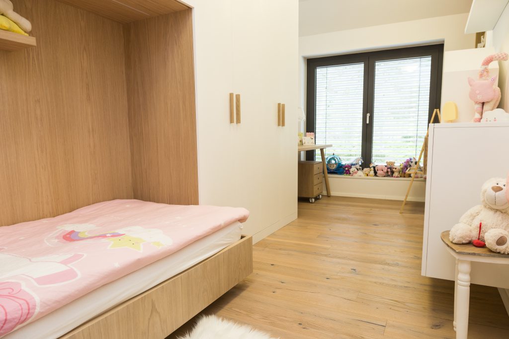 Otroška soba je prostor, kjer se otroci zadržujejo precejšen del dneva. Vaše želje glede pohištvene opreme sobe za vašega nadebudneža bomo oplemenitili z našim znanjem ter izkušnjami, da bo otroška soba prostor, kjer se bo vaš otrok dobro počutil, rad igral in tudi prijetno sanjal. Naj bo soba za vašega otroka kot materino naročje – varno zavetje ponoči, podnevi pa prijeten igralni ali študijski prostor za naše male in velike ume.